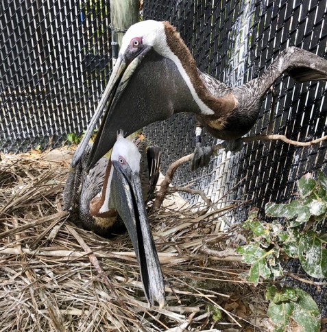 Pepe and Enrique, both American brown pelicans from South Florida, have spent nearly two decades as a devoted same-sex couple. At the beginning of breeding season this past December, “the boys” — as their caretakers refer to them — built a nest together in the corner of the large pen where they live overlooking Biscayne Bay.
